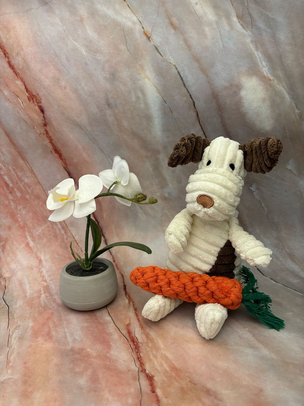 這款玩偶造型狗狗啃咬玩具,以動物造型作為靈感,設計出可愛親切的造型,為毛孩帶來情緒安撫與咀嚼樂趣的雙重體驗。外觀呈現溫暖及活潑的顏色,搭配柔軟布料與立體耳朵、尾巴等細節,吸引狗狗自然靠近、啃咬與擁抱。